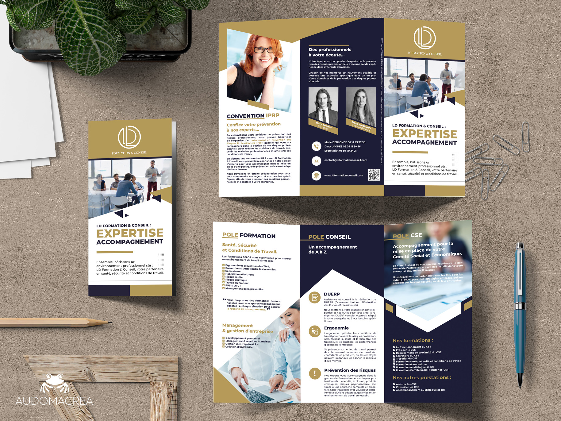 Dépliant A4 – 3 volets : 200 € – Dépliant A7 – 2 volets : 80 €